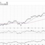 There is a weakening in market breadth, as displayed by the breadth indicators—Bullish Percent Index, Percentage of Nasdaq stocks trading above their 200-day moving average, and the Advance/Decline Line—displayed in the lower panels.
